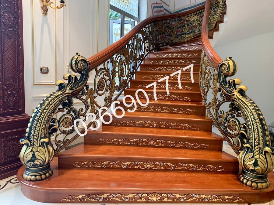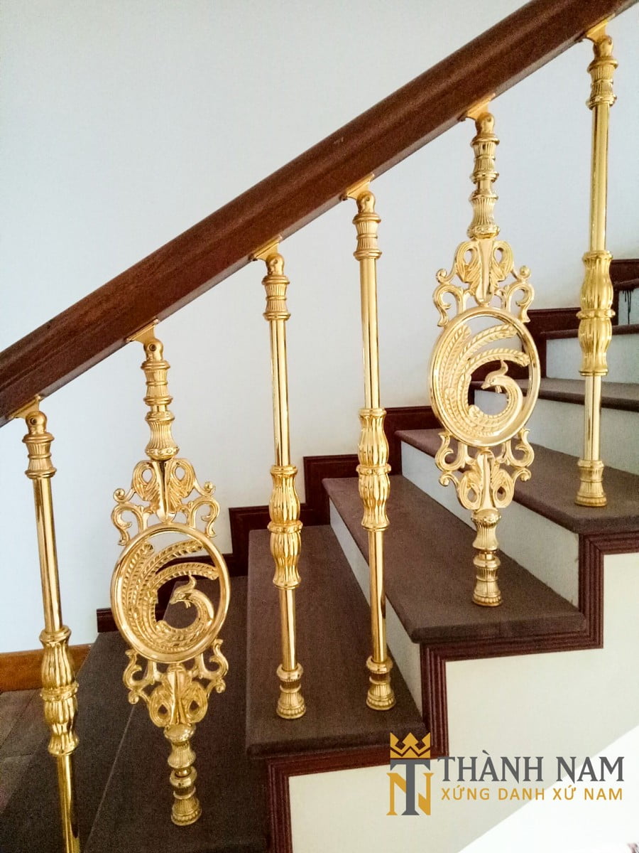 Cầu thang nhôm đúc là mẫu cầu thang sản xuất từ hợp kim nhôm chắc chắn, có độ bền cao. Những mẫu cầu thang hợp kim nhôm hiện nay sở hữu những họa tiết, hoa văn được chế tác tinh xảo. Đặc biệt khi kết hợp với tông màu vàng đồng góp phần nâng tầm đẳng cấp không gian sống.